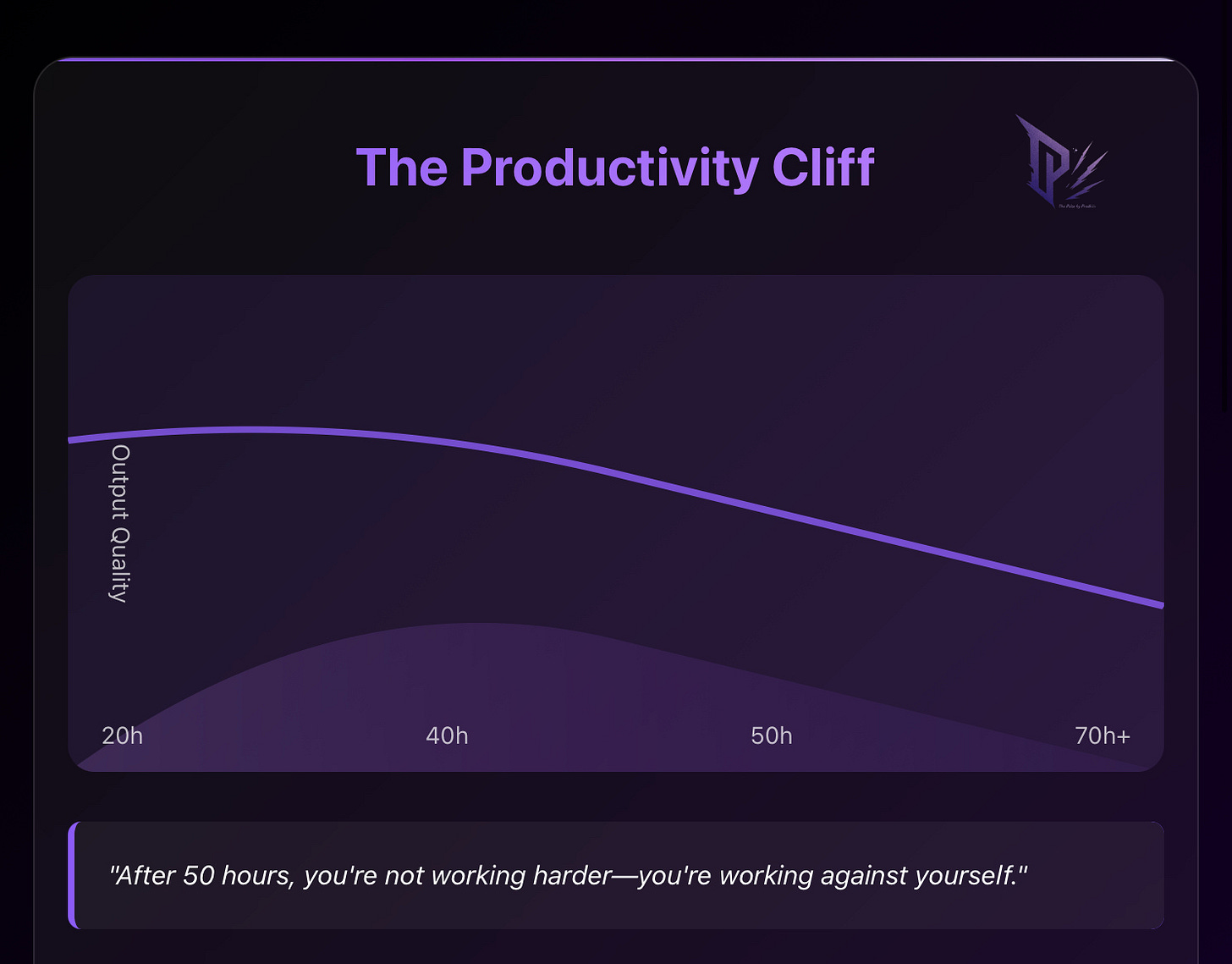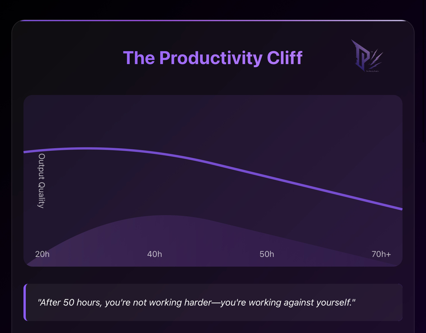 A study by Stanford University revealed that after 50 hours of work per week, productivity per hour drops sharply.